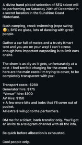 - Venue: woodford area